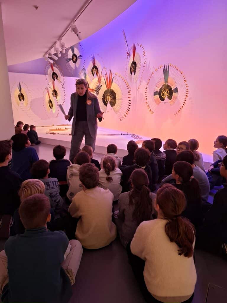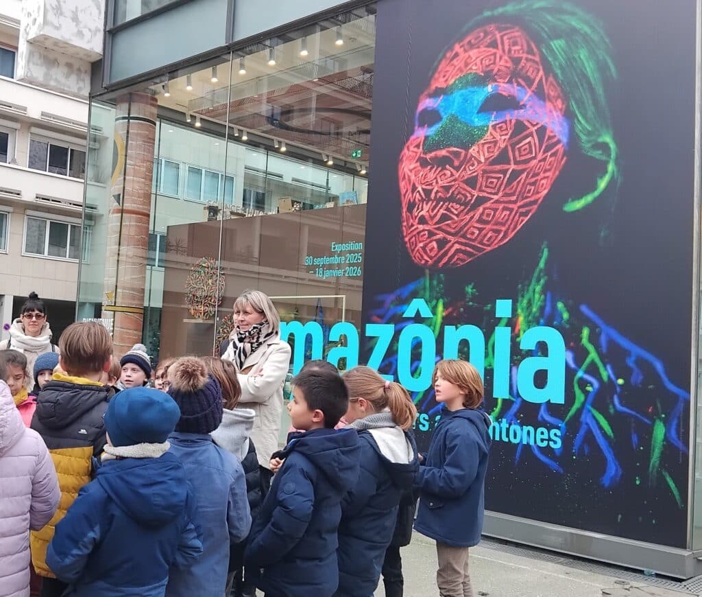 Mardi 2 décembre 2025, les classes de CE1, de CE2 et de CM2 se sont rendues à l’exposition Amazônia au musée du Quai Branly. Lors de cette visite guidée et colorée, les élèves ont découvert l’Amazonie à travers les regards des peuples qui l’habitent. Ils ont ainsi étudié, grâce aux arts, la vie dans les villages amazoniens, leurs traditions ancestrales, leurs manières d’habiter la terre et d’observer minutieusement les relations entre animaux et plantes. Les masques et les peintures sur le corps ont particulièrement retenu l’attention de nos écoliers !