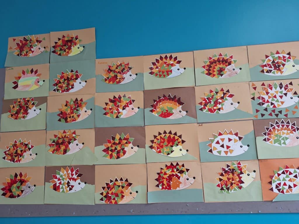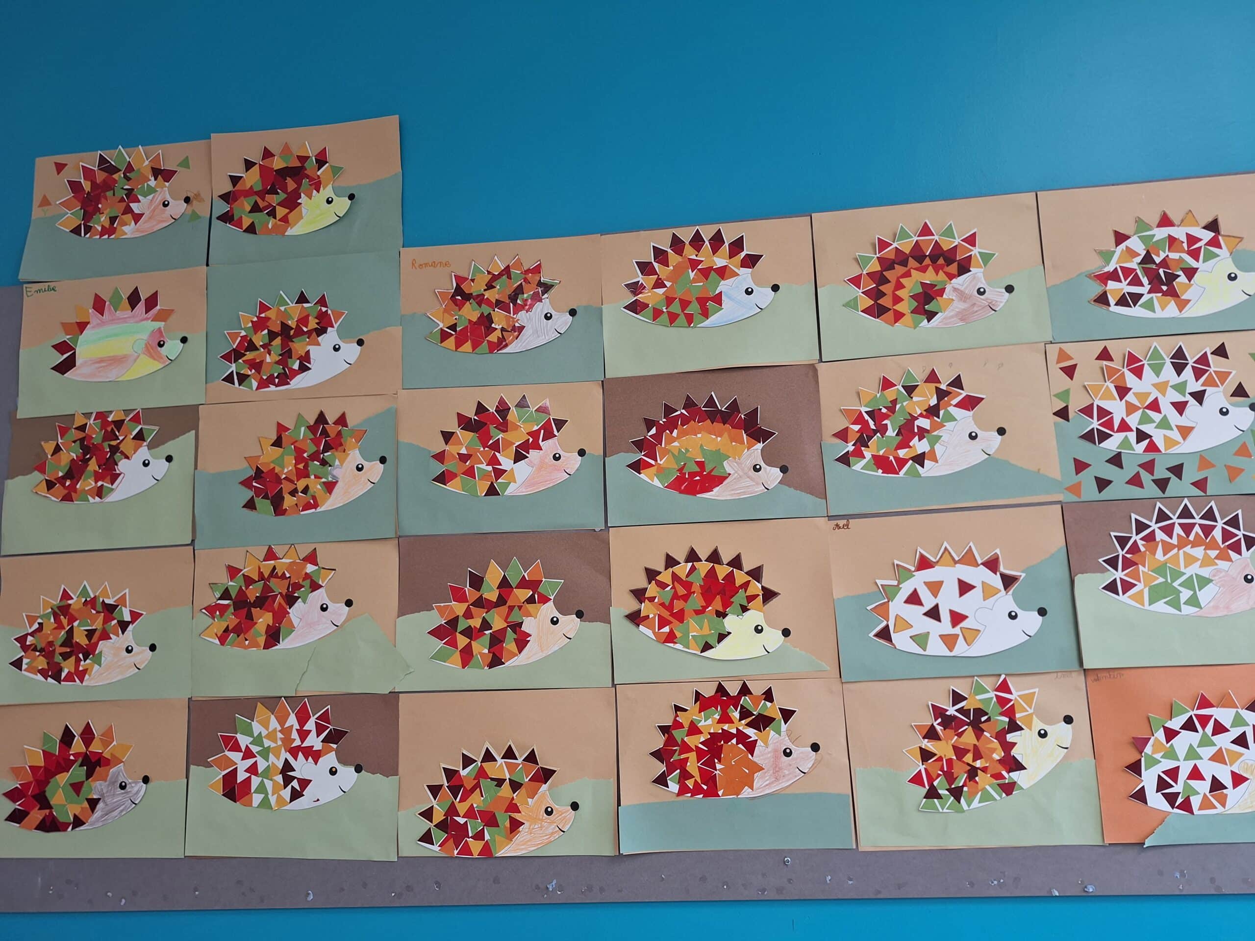 Pour célébrer le changement de saison, la classe de CP a travaillé en arts plastiques sur un atelier « hérissons » aux couleurs de l’automne.