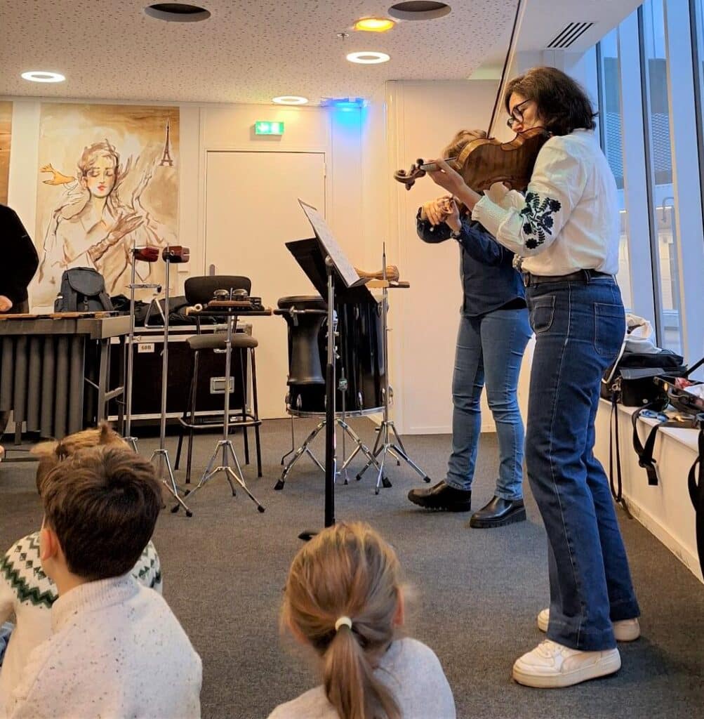 Qui sont ces mystérieuses oranges ? Et où se trouvent-elles ? Ce conte a plongé nos jeunes auditeurs en Espagne dans la musique de Granados, de Falla, Albeniz, Yradier… Nous avons découvert les percussions et le violon au rythme de la habanera…c était magique !