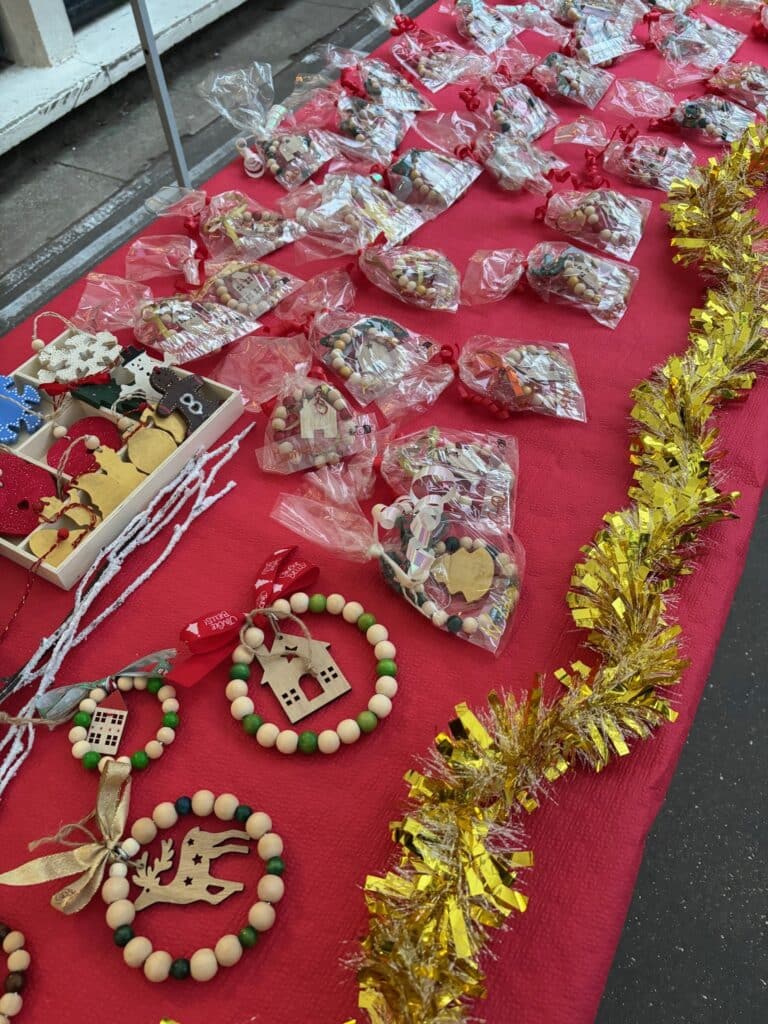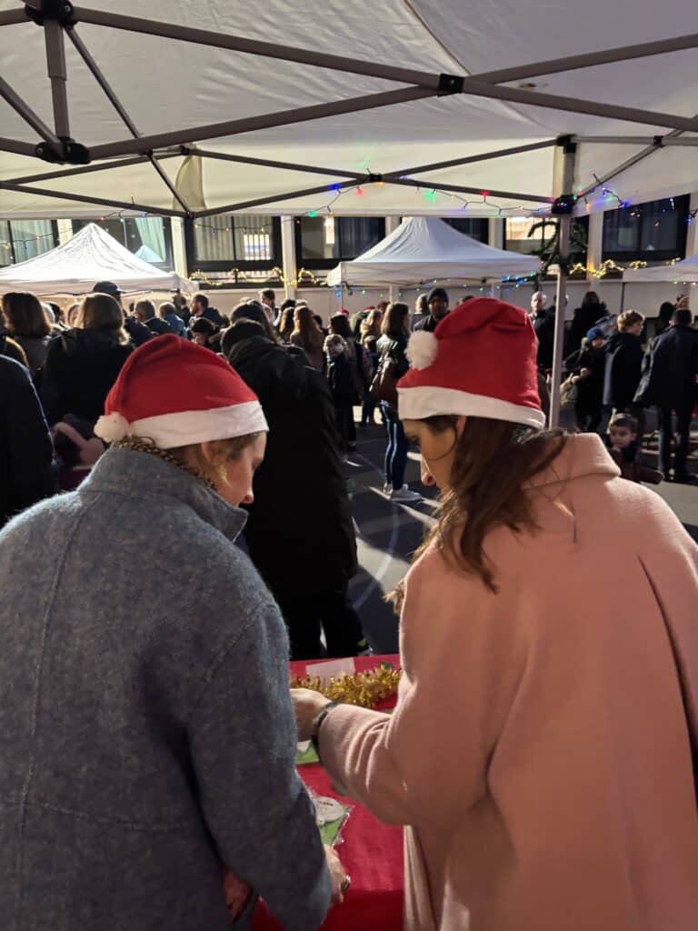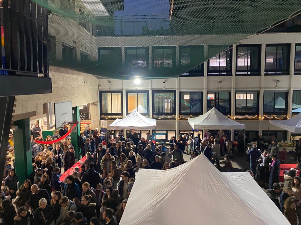 Vendredi 12 décembre, notre cour s’est joyeusement transformée en marché de Noël : chocolat chaud, concours et dégustation de gâteaux, vente de décorations de Noël confectionnées par nos élèves, vin chaud, … Une belle initiative sur fond de chants de Noël, qui a réjouit petits et grands et permis de soutenir l’association « Sur les bancs de l’école », qui œuvre pour les familles d’enfants à troubles autistiques et assure leur inclusion scolaire en milieu ordinaire.